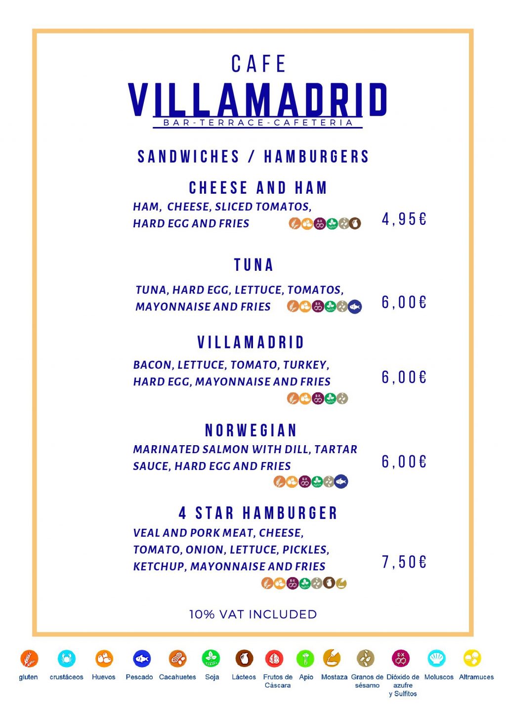 Carta especial cafetería y terraza