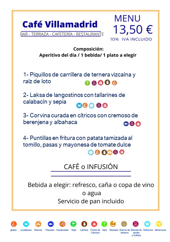 Carta especial cafetería y terraza