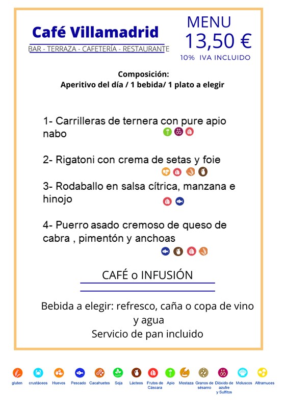 Carta especial cafetería y terraza