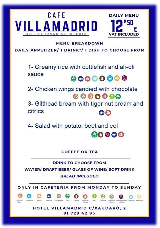 Carta especial cafetería y terraza