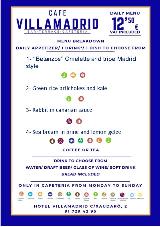 Carta especial cafetería y terraza