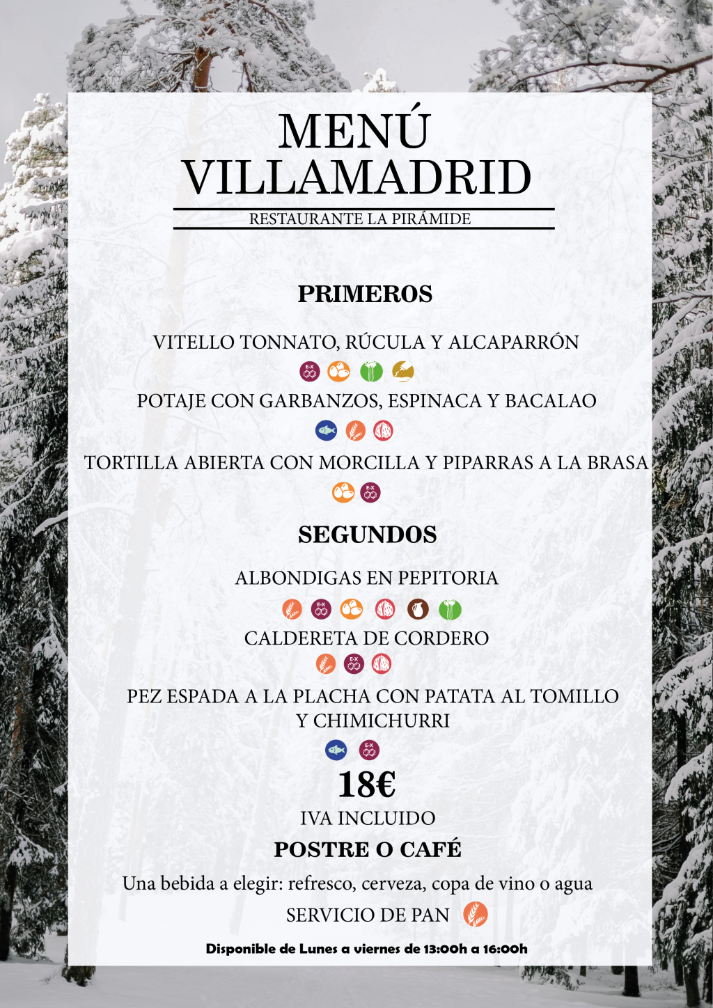 Carta especial cafetería y terraza