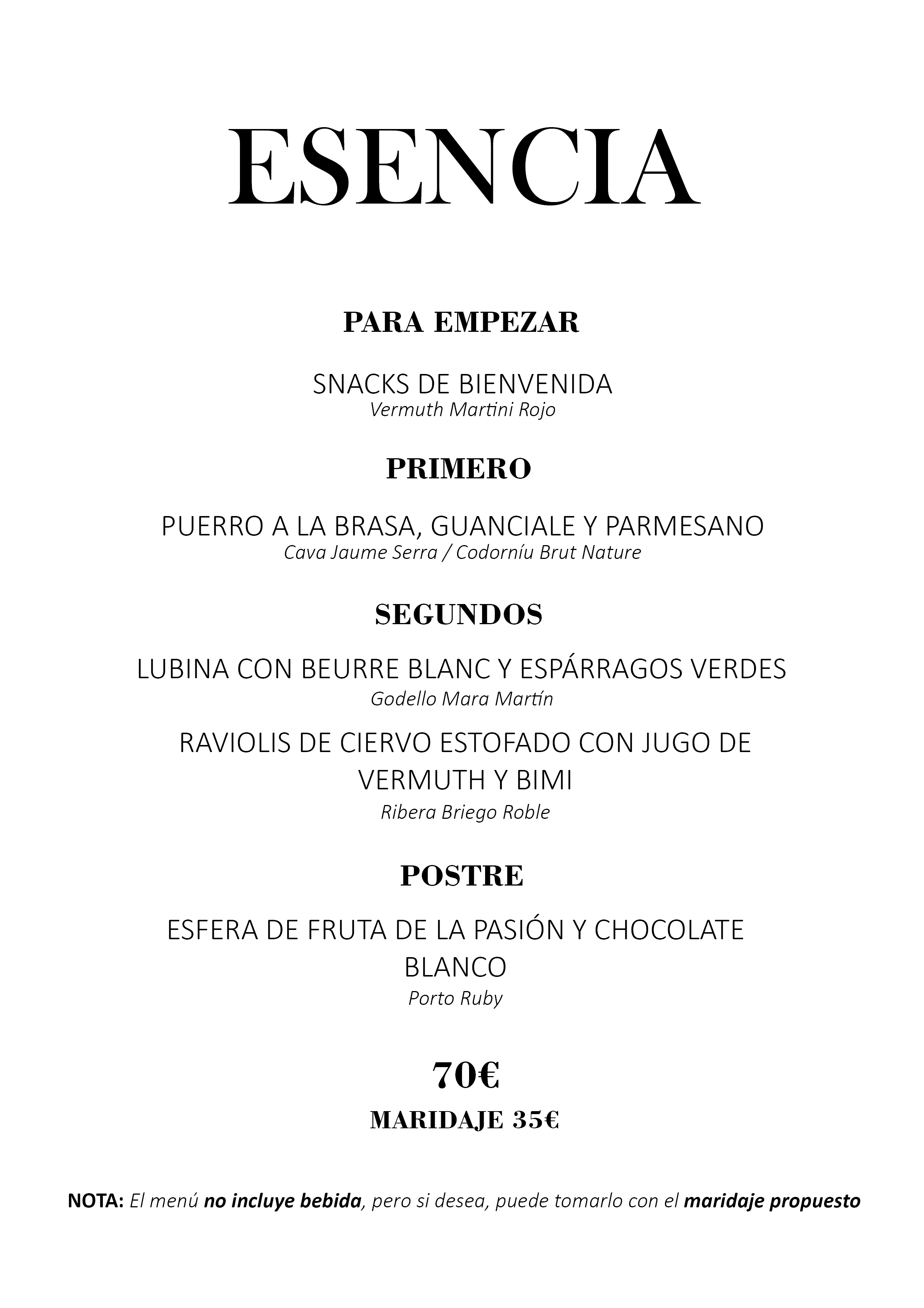 menu esencia 2025 con maridaje