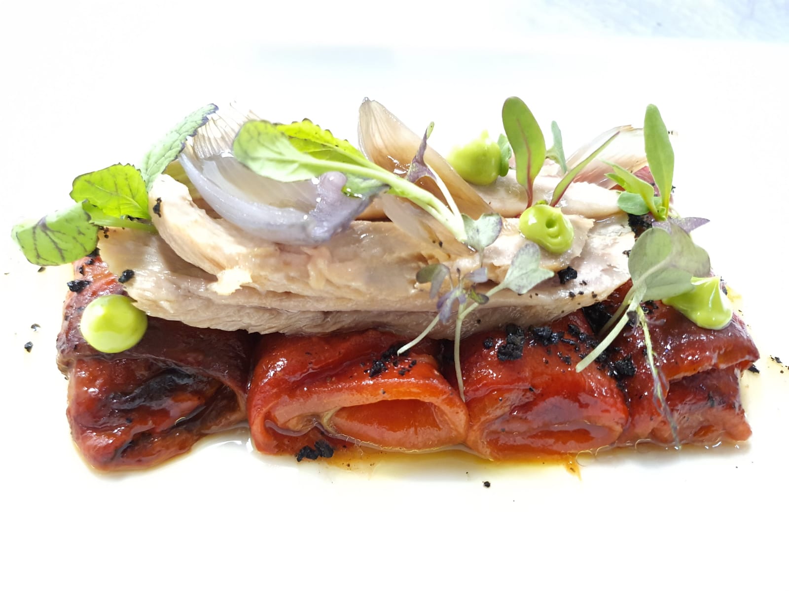 Pimientos a la llama, ventresca de atún, cebolleta asada y emulsión de hierbas silvestres 12 mayo, 2021